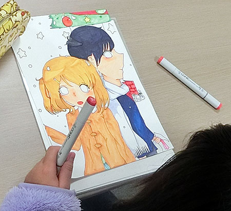 引き続きクリスマスイラストを各自で描きました。完成した人もだいぶ増えてきました。