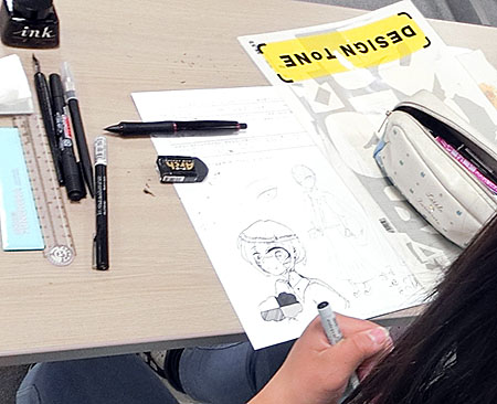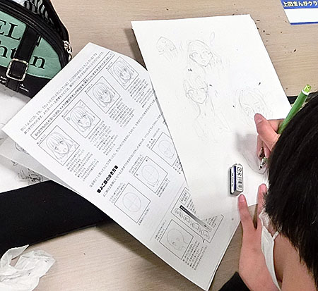 初回なので、参加者アンケートの記入と、ペンやスクリーントーンなどの道具の使い方、顔のかき方を練習しました。