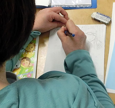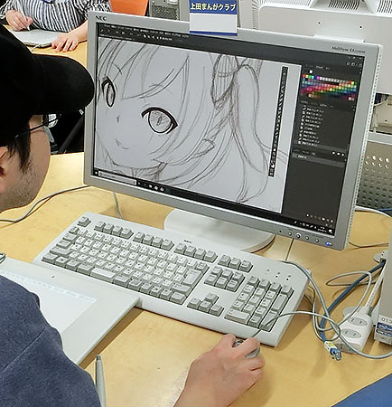 初心者の人には小西先生からSAIを使ったCG色塗りのやり方を説明。経験者の人はそれぞれのマンガやイラスト作品を描いていきました。