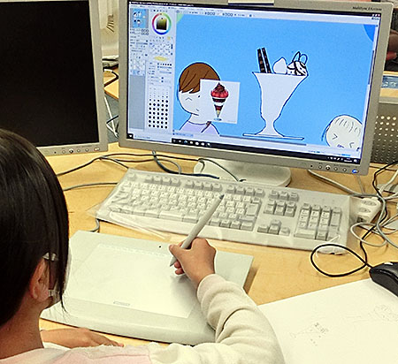 2020年9月 6日(日) [子ども向け日記] R2年度前期:第7回活動日よりまんが作品のとびら絵のデジタル彩色や、本文原稿の作業をして、完成した人はクリスマスイラストや同人誌用のカットを描きました。