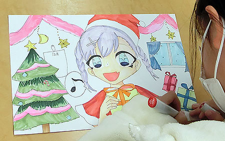前回に引き続き、クリスマスイラストの下描き・ペン入れ・コピックでの色塗りをしていきました。